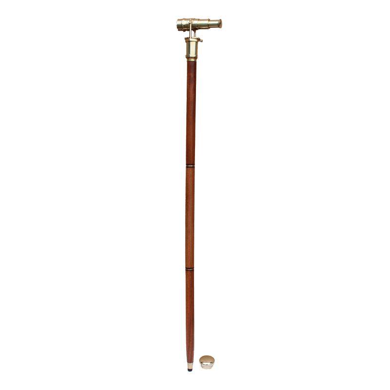 Jalutuskepi küljes on väike teleskoop ning sees väike klaaspudel-kolb.