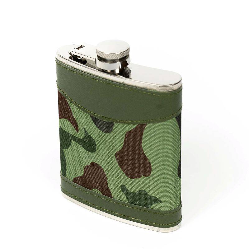 Kunstnahaga ja kaitsevärvi kangaga kaetud roostevabast terasest taskupudel mahutab kuni 210 ml vedelikku.
