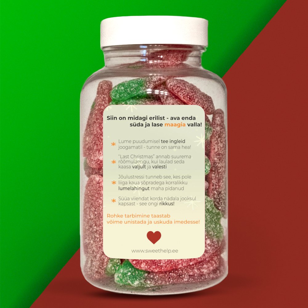 Eriline kingitus jõuludeks! Kommipurk on täidetud emotsiooni, maitsvate kummikommide ja