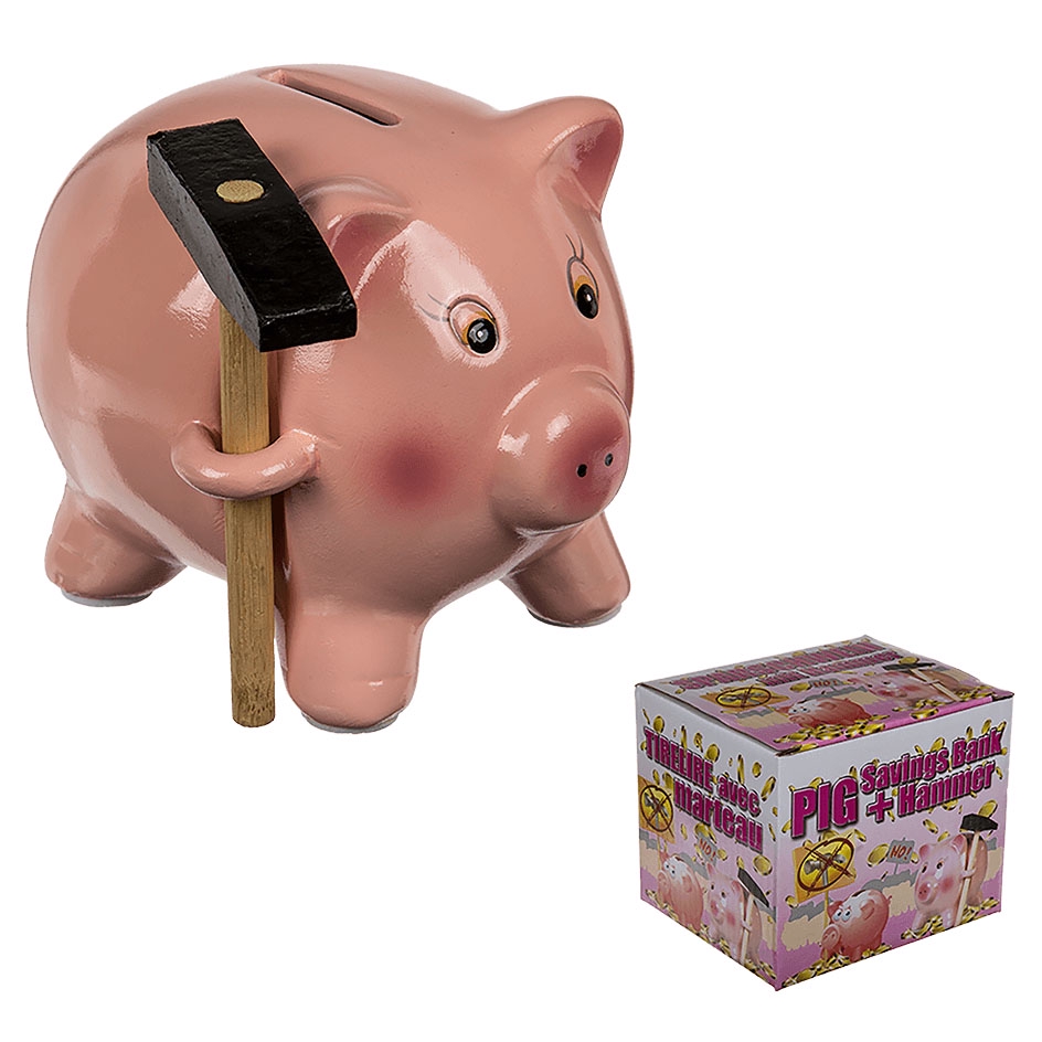 Armsa välimusega roosa keraamiline rahakassa. Rahakassal on pealpool suurem ava ja seetõttu on hea sisestada ka 1- ja 2-euroseid münte. Rahakassast müntide kättesaamiseks tuleb siga puruks lüüa, kasutades selleks kaasasolevat haamrit.