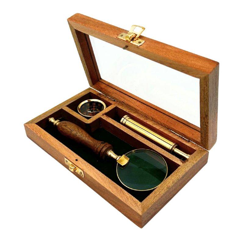 Reisikomplekt – teleskoop, kompass, luup on äge kingitus loodushuvilisele seiklejale.
